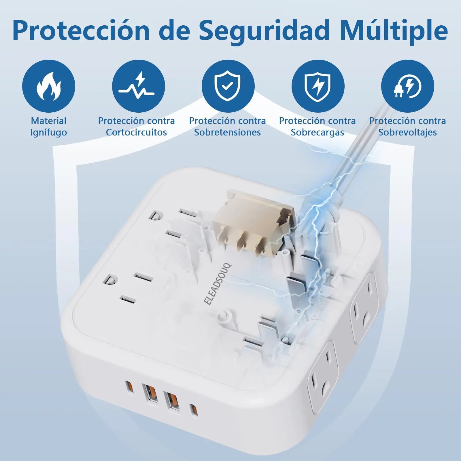 La regleta viene con 8 salidas y 4 puertos USB (2 USB-A y 2 USB-C, hasta 3 A) para cargar su teléfono, tableta y computadora portátil simultáneamente. Su diseño organizado evita eficazmente los cables enredados, proporcionando un entorno de carga ordenado en su escritorio sin la necesidad de adaptadores adicionales.