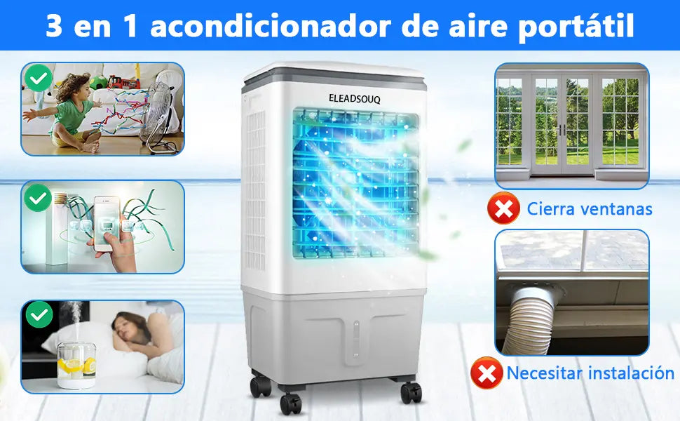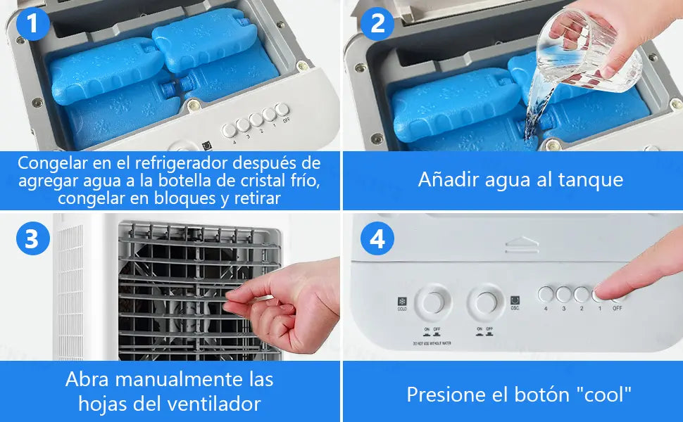 Este aire acondicionado portátil de 20L proporciona un enfriamiento potente, adecuado para espacios comerciales como tiendas y restaurantes, sin la necesidad de recargas de agua frecuentes. Equipado con funciones de enfriamiento, ventilador y ventilador de agua, alivia rápidamente el calor y viene con una botella de agua congelada para refrescar el ambiente en segundos. Diseño de botón intuitivo, fácil de operar, no requiere control remoto, disfrute de un enfriamiento rápido. Respetuoso con el medio ambiente y ahorra energía, es adecuado para escuelas, hospitales, oficinas y otros lugares para garantizar la seguridad de los niños, mujeres embarazadas y mascotas y crear un ambiente cómodo y fresco.