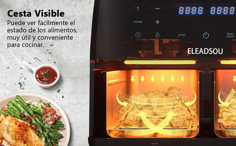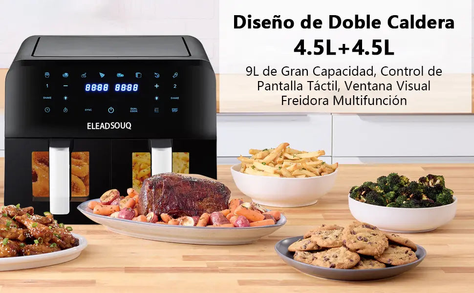 ELEADSOUQ Freidora de aire de doble zona 4,5 L + 4,5 L multifunción digital